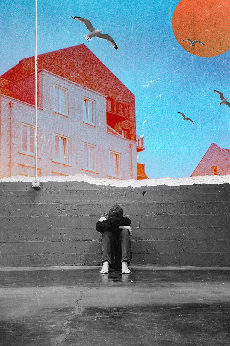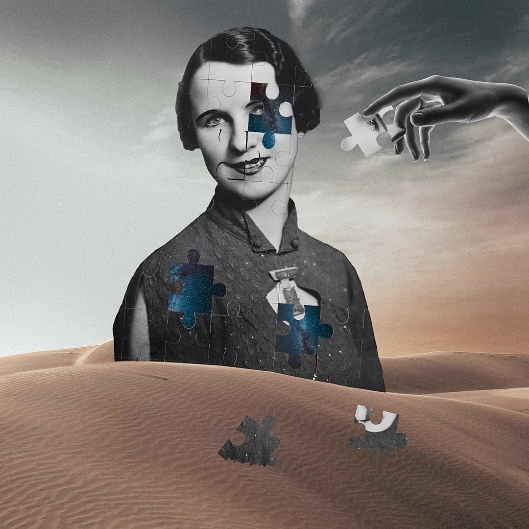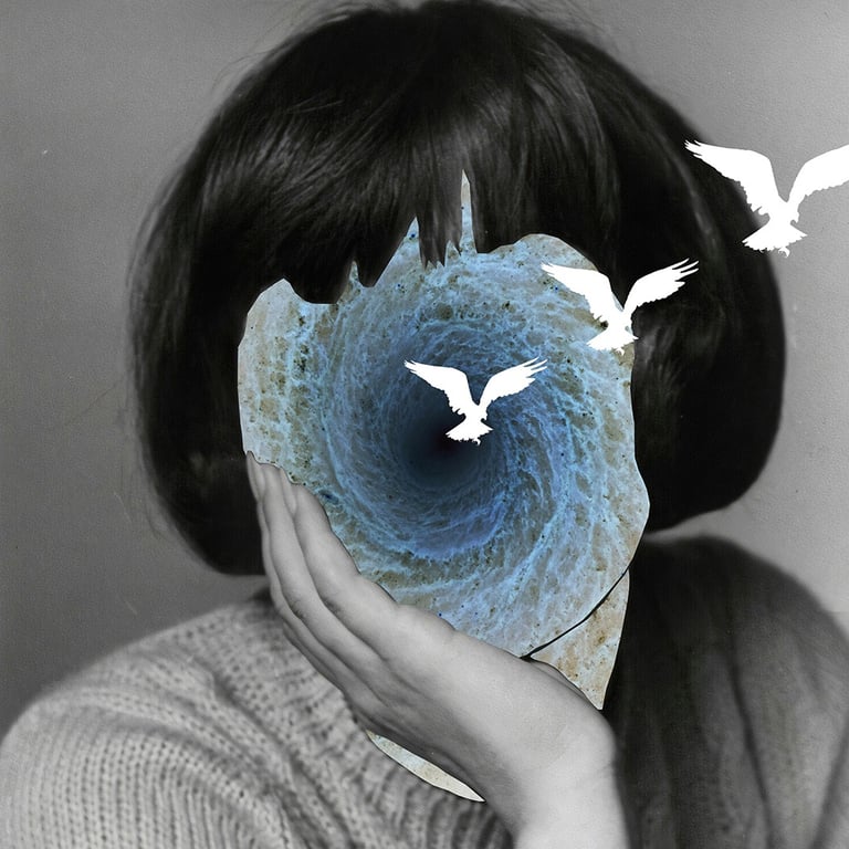 collages that navigate the space between light and dark, examining nuance, balance, and the subtle gradations that connect extremes